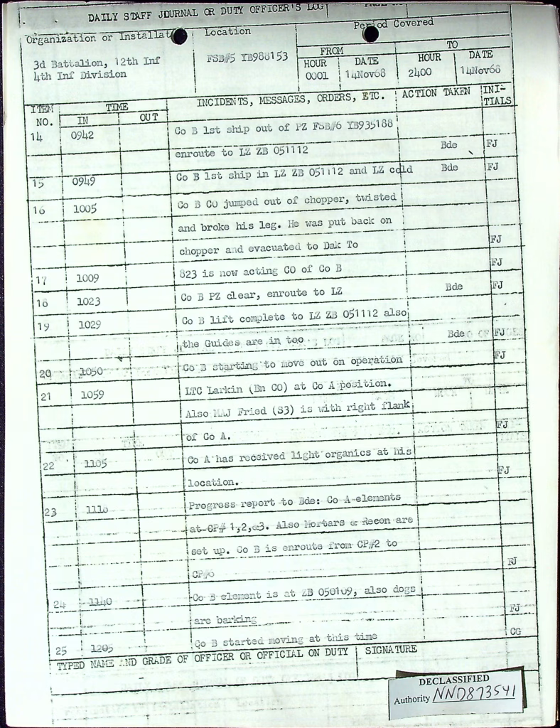 {authors note – all names, dates and unit designators were found in the S-3 Daily Journal for November 14, 1968, which can be found in its entirety here.}